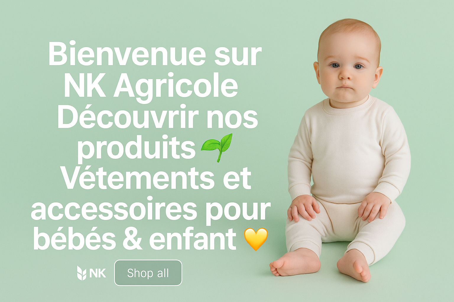 Chez NK Agricole, nous croyons à la qualité, au confort et à la douceur — tout ce qu’il faut pour prendre soin de vos petits trésors 💛