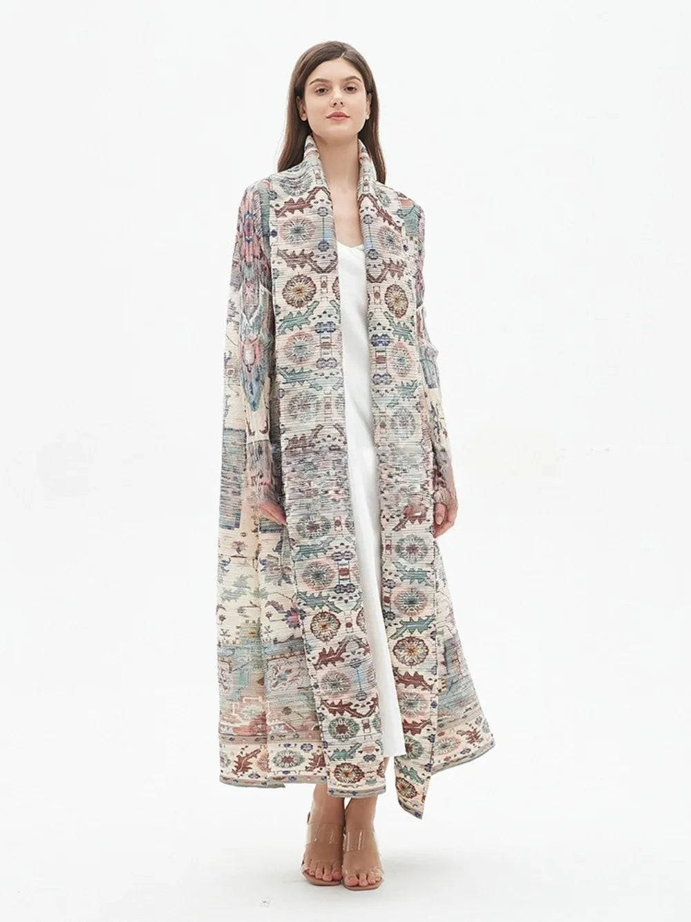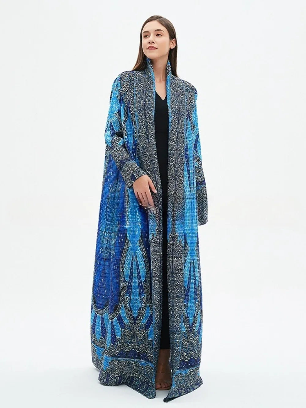 Découvrez cette abaya femme au design vintage, un caftan long à manches longues inspiré du style oriental. Conçue par un créateur original, cette pièce élégante se porte comme un manteau léger ou un trench pour un look chic et modeste. Idéale pour les occasions spéciales ou la mode quotidienne raffinée. 🌙✨