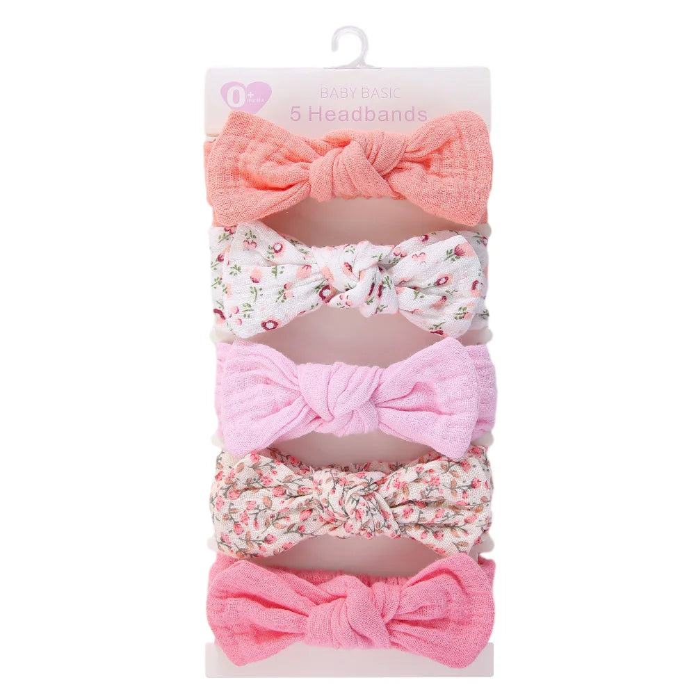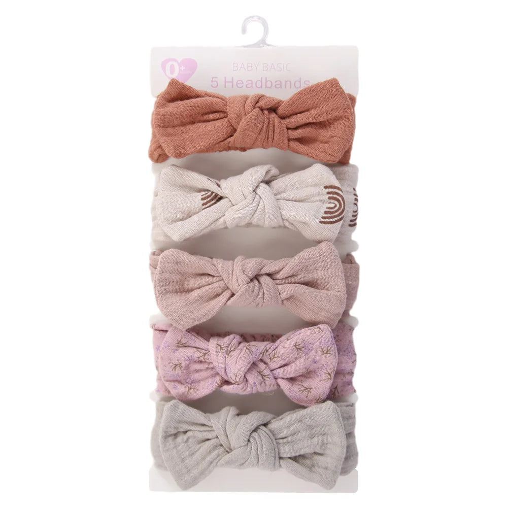 Lot de 5 bandeaux élastiques en coton et lin pour bébé.