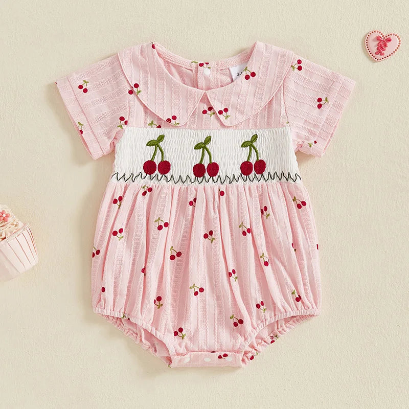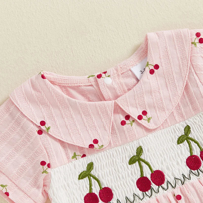 Son joli col poupée smocké et sa broderie cerises ajoutent une touche douce et élégante.