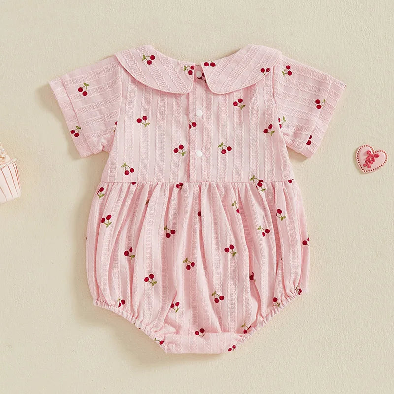 Adorable barboteuse d’été pour bébé fille, légère et confortable, avec une coupe ample idéale pour les journées chaudes.