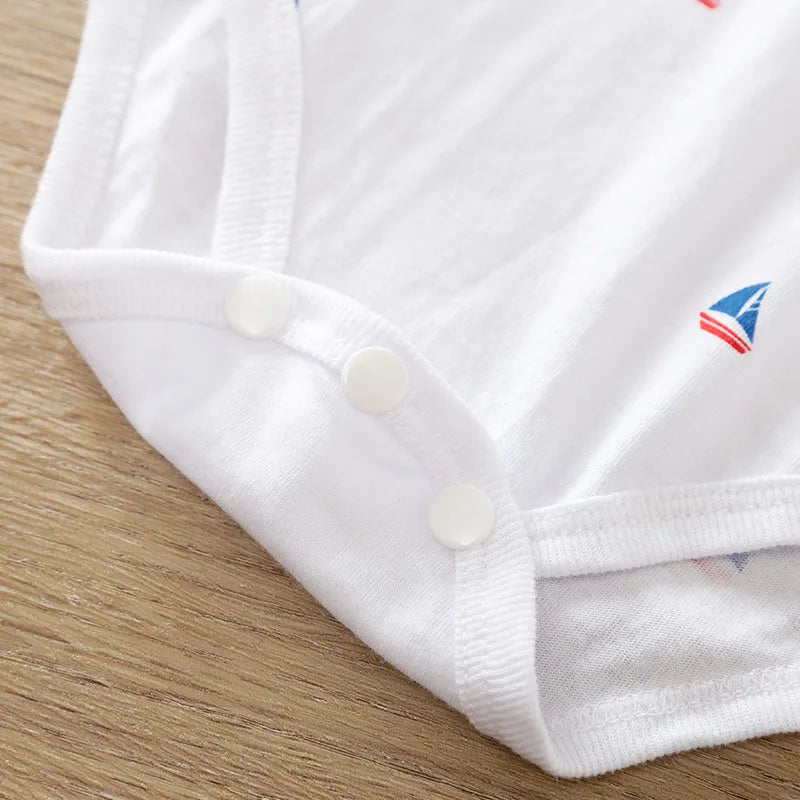 Ensemble bébé en coton doux avec body à manches courtes et imprimé voilier.