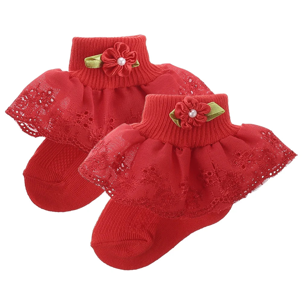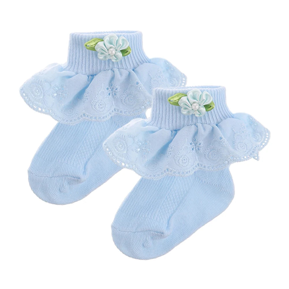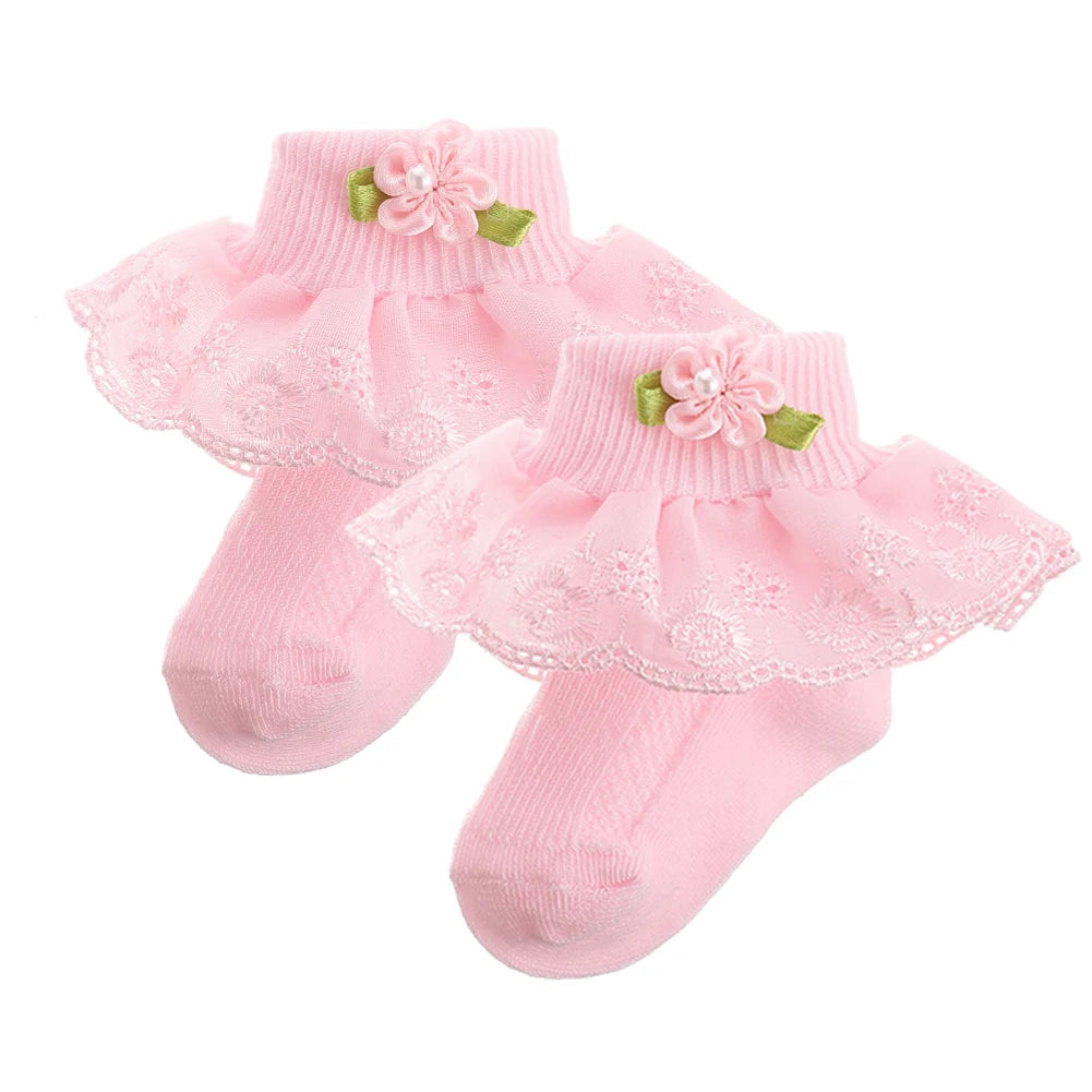 Chaussettes pour bébé fille en coton respirant avec dentelle et volants élégants.