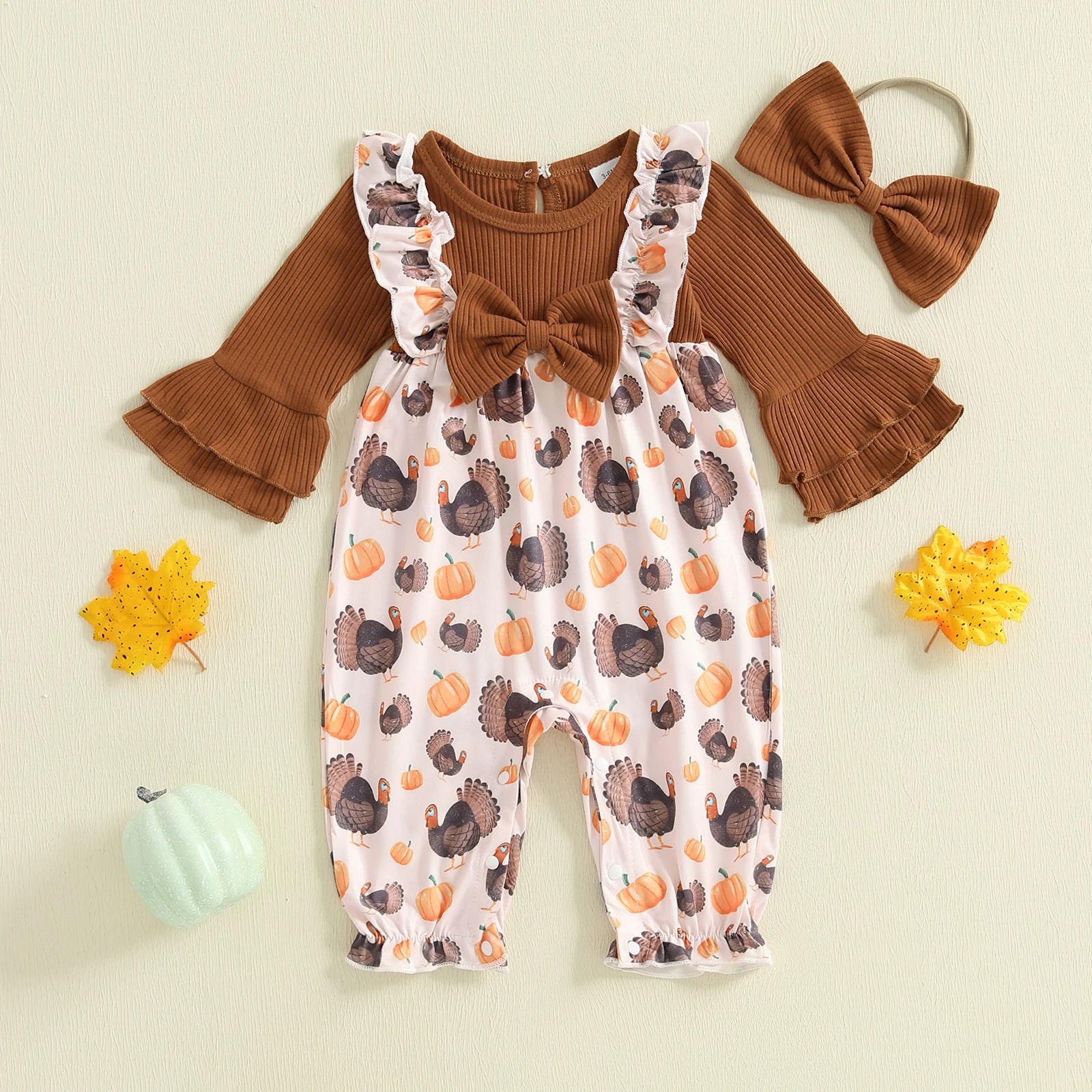 Adorable combinaison pour bébé fille avec imprimé citrouille, manches longues et boutons pratiques. Livrée avec bandeau assorti, confortable et légère pour nouveau-nés de 0 à 18 mois, idéale pour le quotidien ou les fêtes.