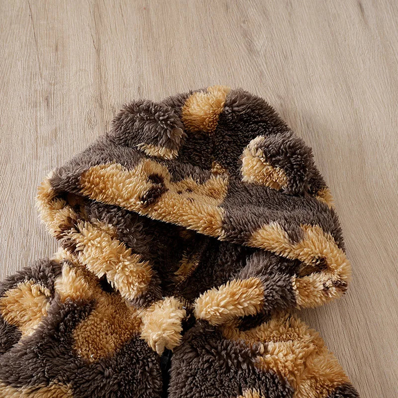 Combinaison pour enfants à manches longues avec capuche, douce et épaisse pour l’hiver.
