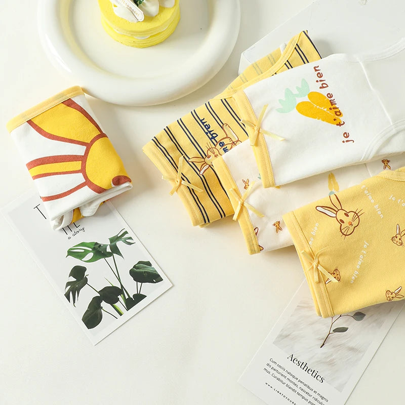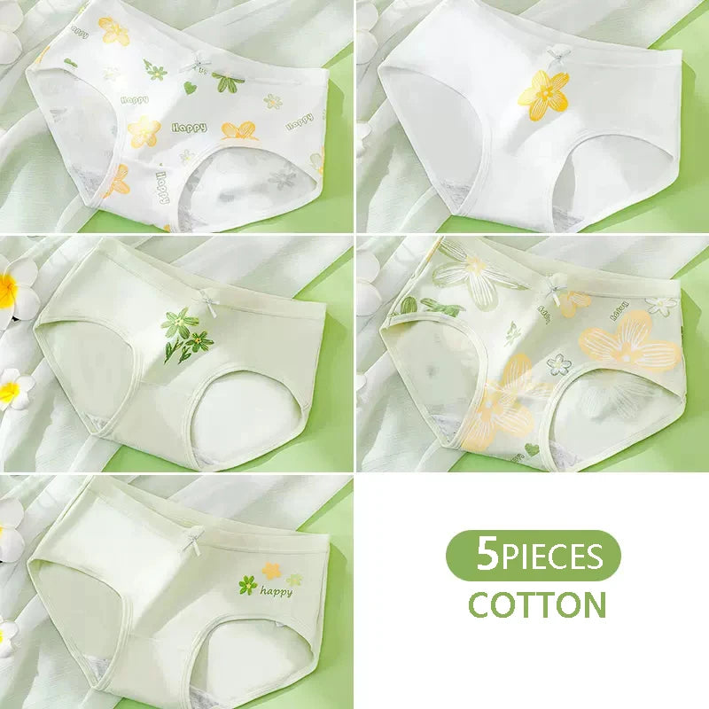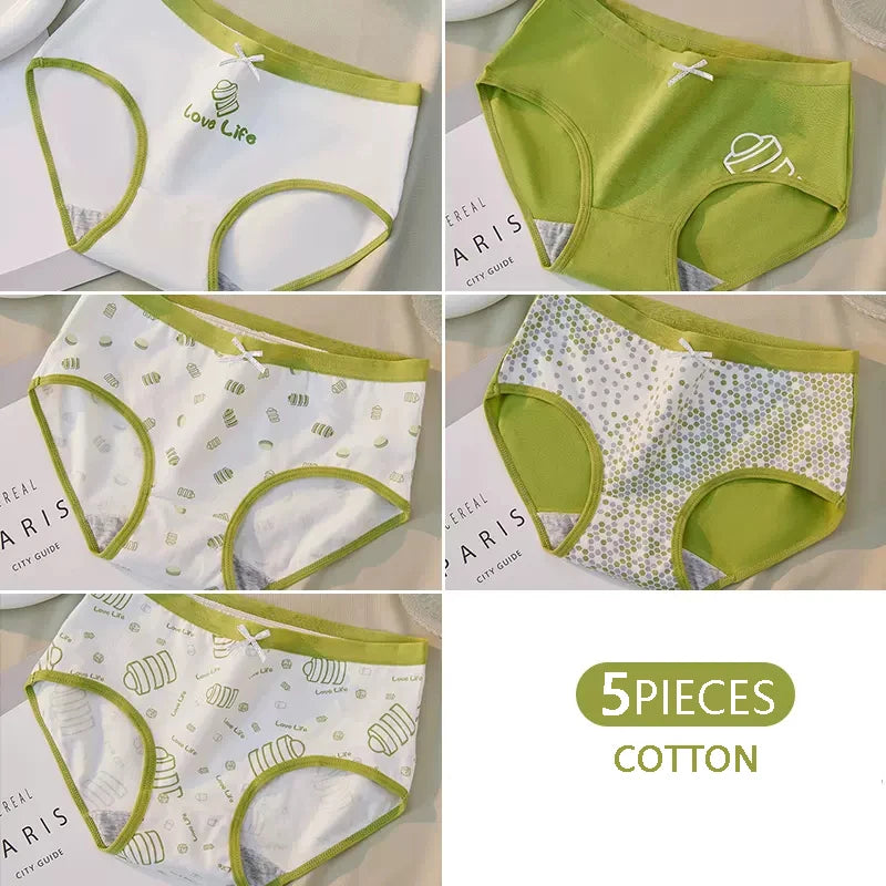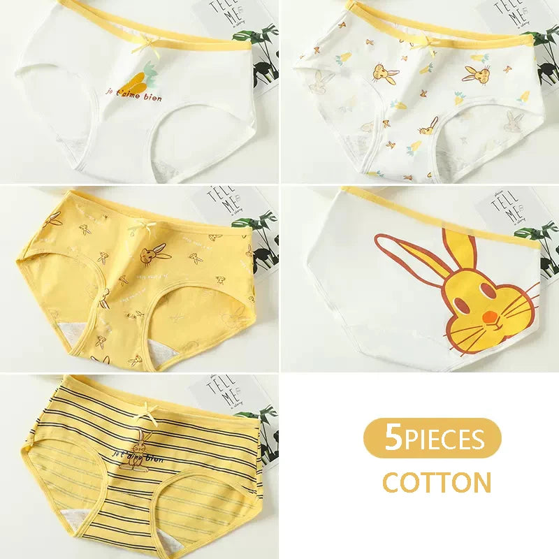 Lot de 5 culottes en coton pour femme avec imprimés mignons, taille basse et tissu doux.