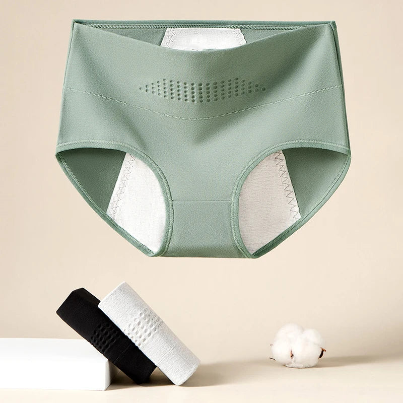 Lot de 3 culottes menstruelles taille haute pour femme, conçues pour offrir confort et protection pendant les règles.