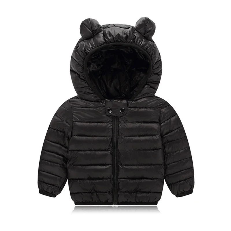 Doudoune légère pour enfants avec capuche et petites oreilles mignonnes, chaude et confortable pour l’automne et l’hiver.
