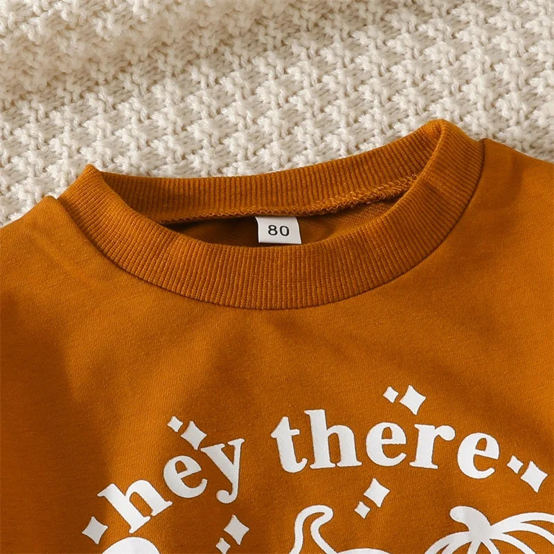 Ensemble 2 pièces pour petite fille avec sweat à manches longues et pantalon évasé imprimé citrouille.