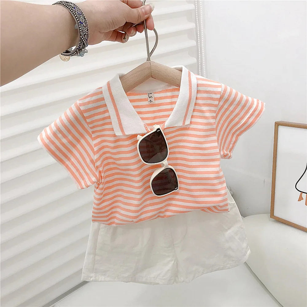 Ensemble pour enfants comprenant polo à manches courtes et short ou robe d’été pour un look coordonné frère-sœur.