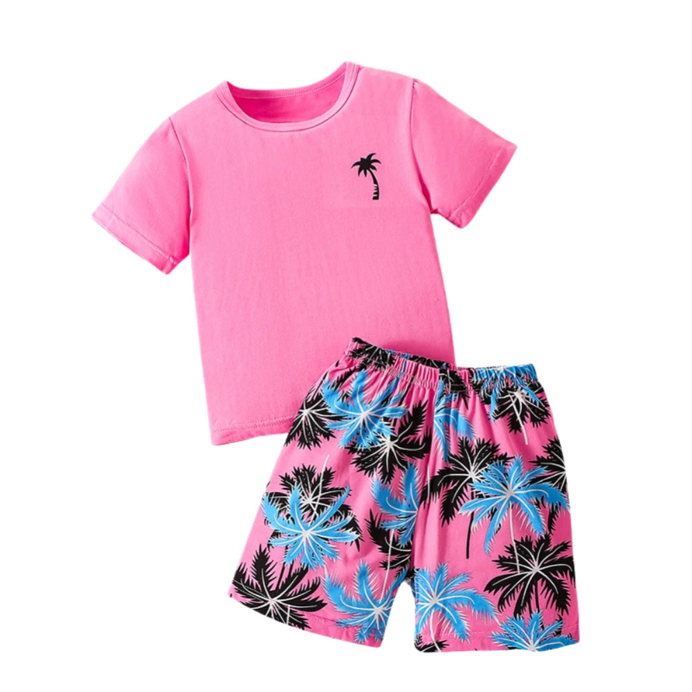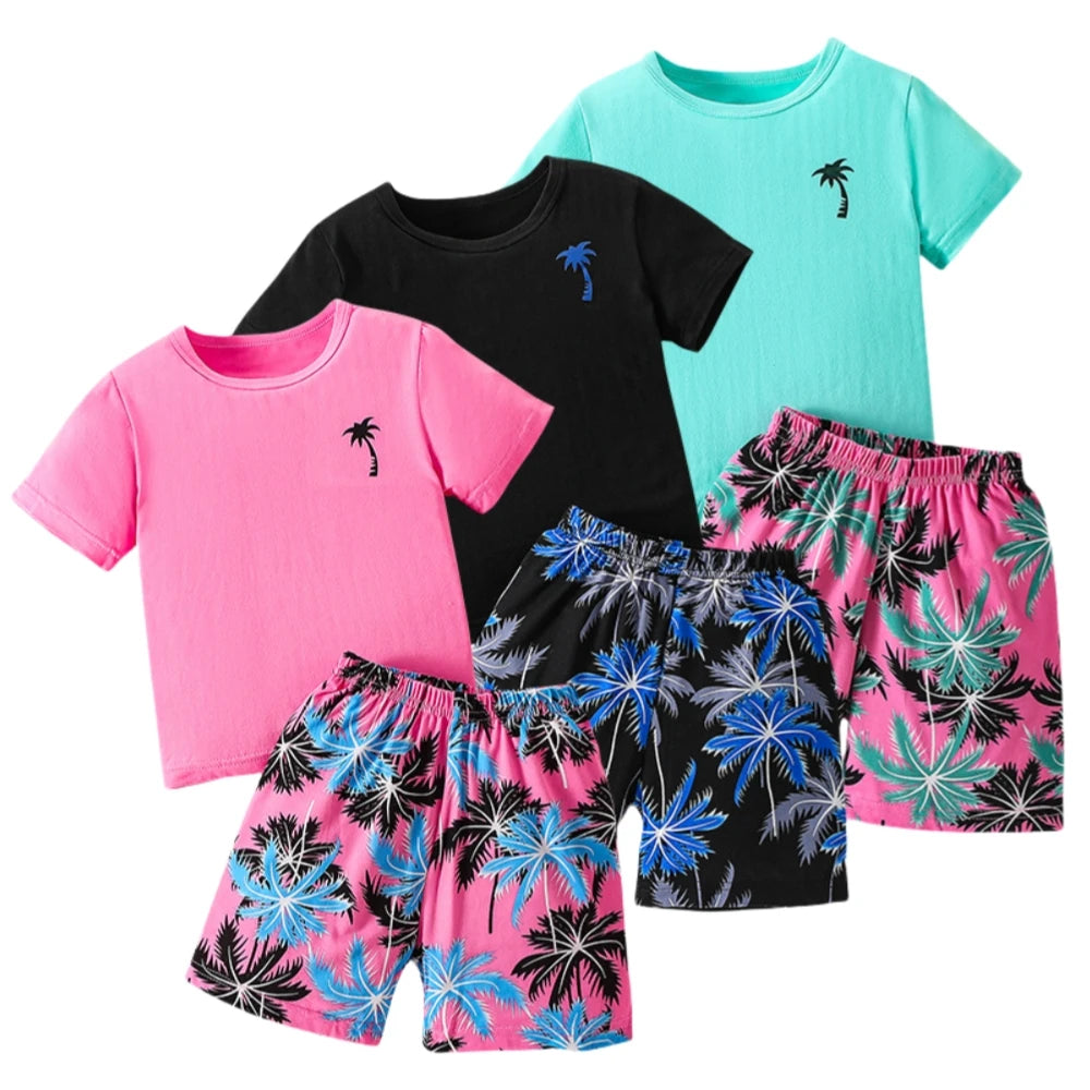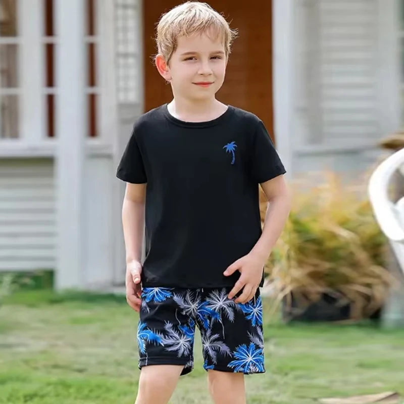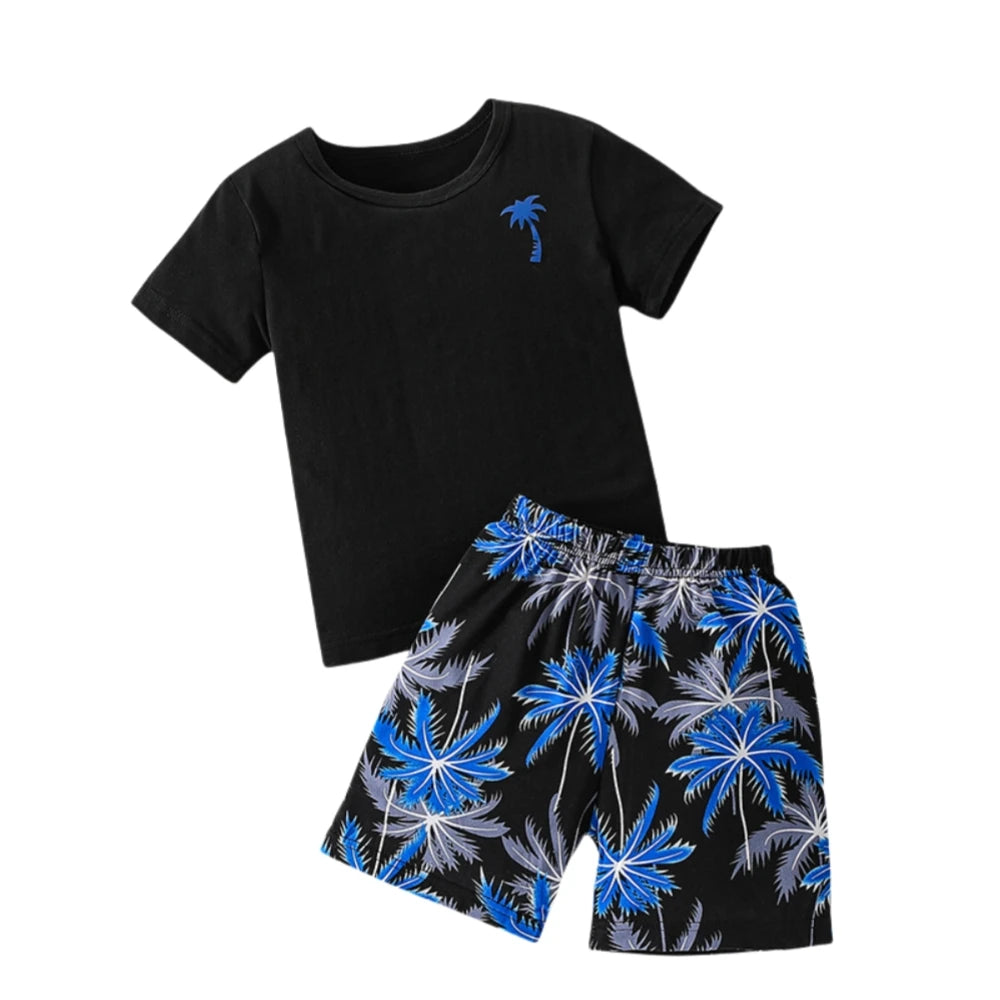 Ensemble pour garçons comprenant tee-shirt à manches courtes avec motif 3D palmier et short assorti.