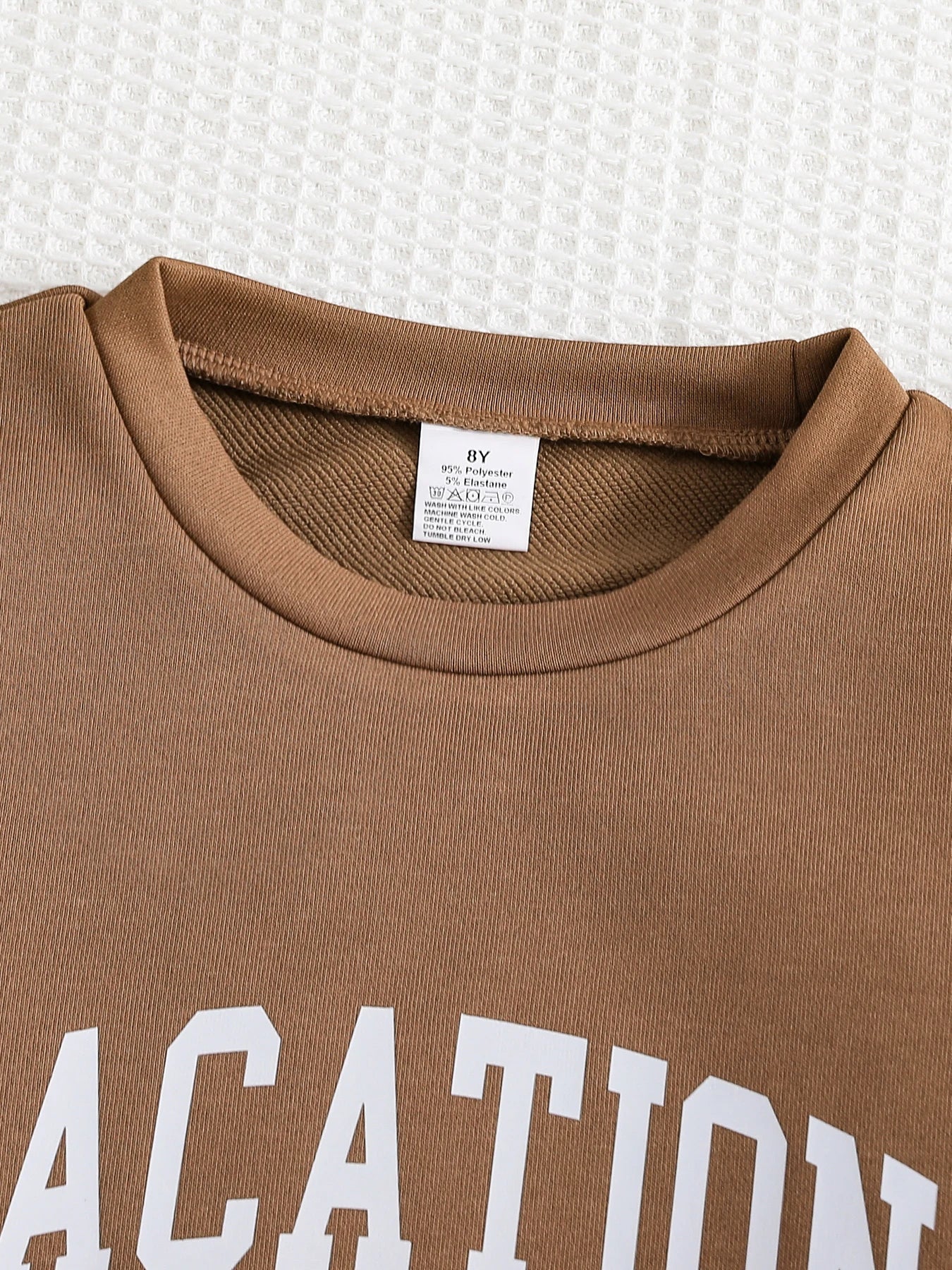 Ensemble 2 pièces pour filles comprenant un haut à col rond à manches longues et un pantalon de sport décontracté, couleur café.