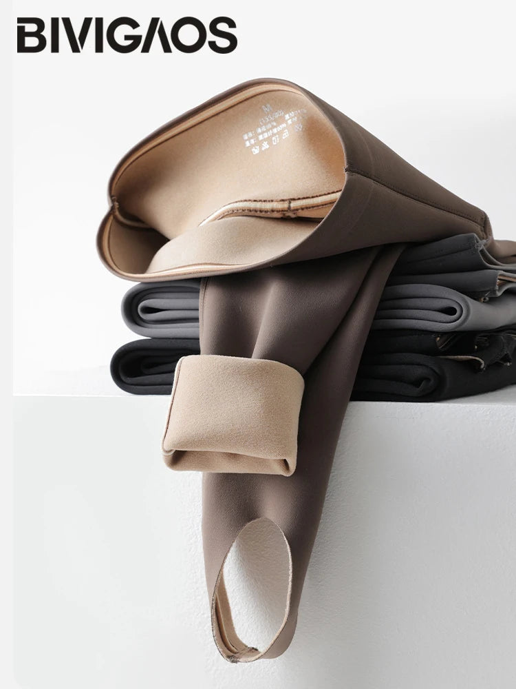 Leggings épais pour femme, taille haute et doublés en polaire pour un confort maximal en automne et hiver.