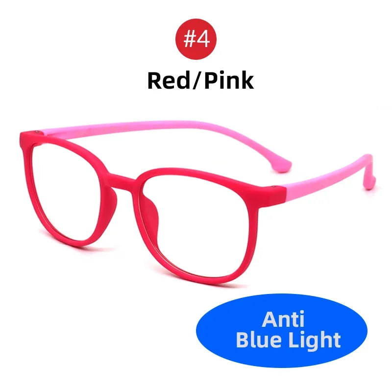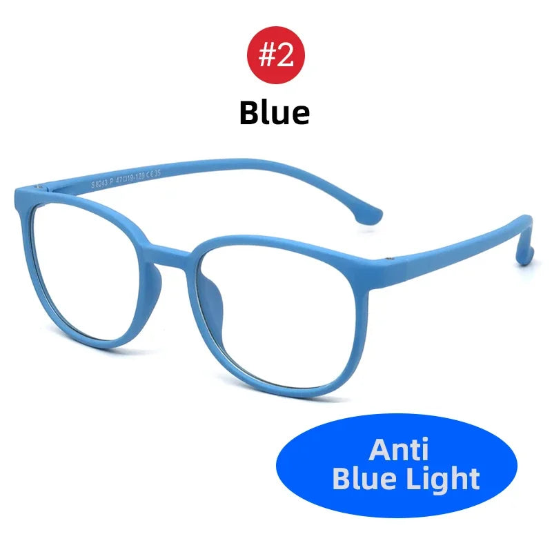 Lunettes pour enfants avec verres filtrant la lumière bleue, monture ronde TR90 mate pour garçons et filles.