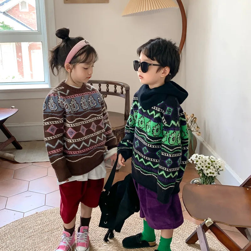 Pull en coton pour garçons avec motifs graffiti, épais et chaud pour l’automne et l’hiver.