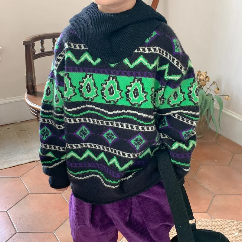 Un pull tendance et pratique, parfait pour les activités quotidiennes et pour un look vintage unique.