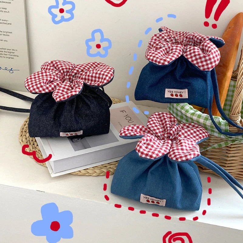 Design tendance avec motif à carreaux et cordelette, idéal comme sac bandoulière ou pochette pour filles et femmes.