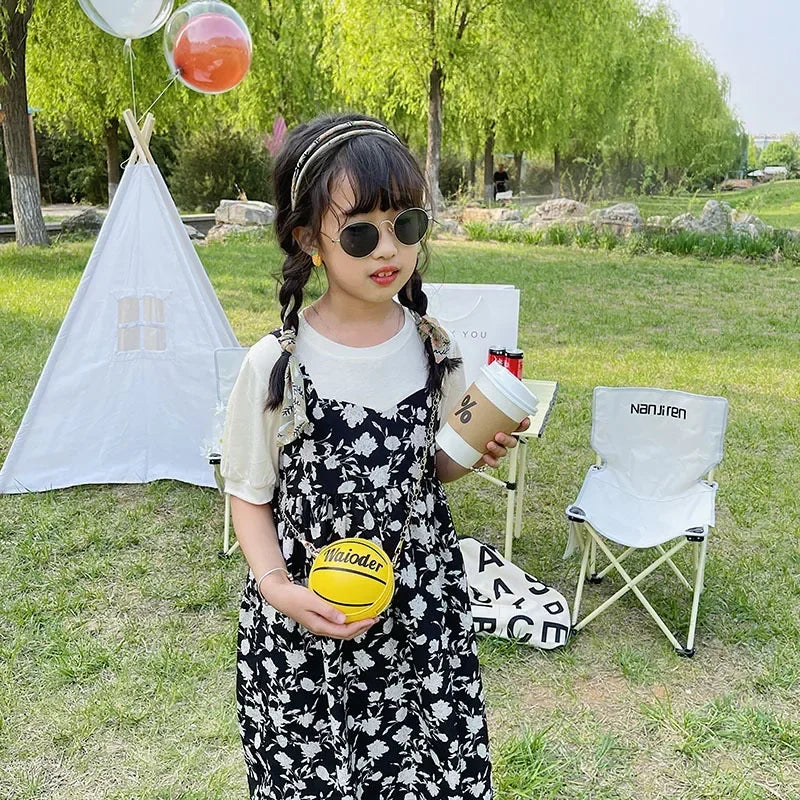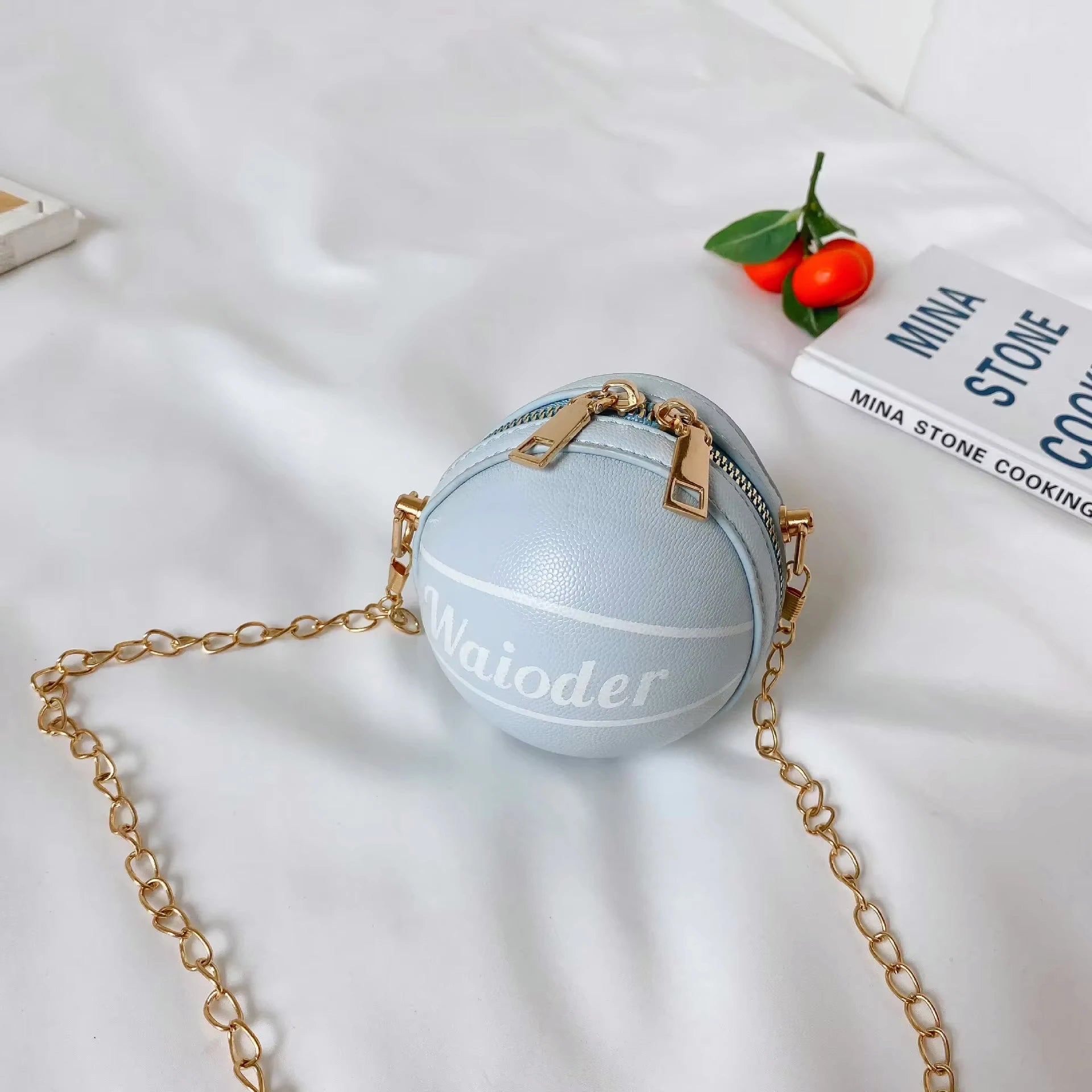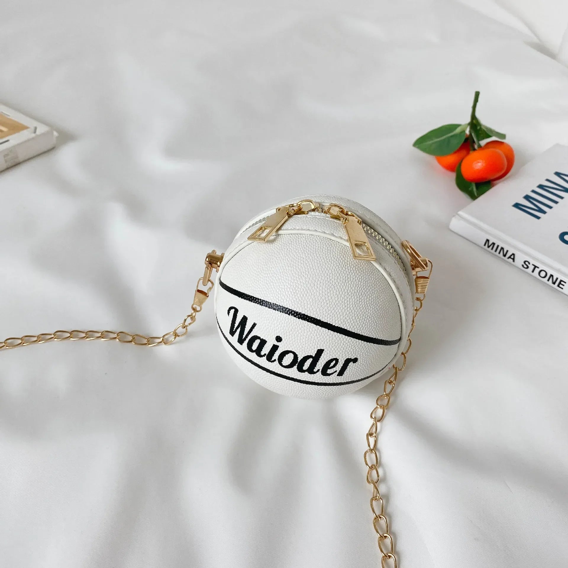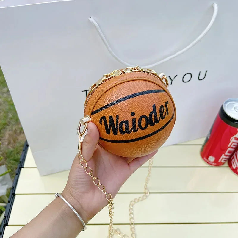 Petit sac bandoulière rond pour enfants avec motif basketball cartoon, parfait pour garçons et filles.