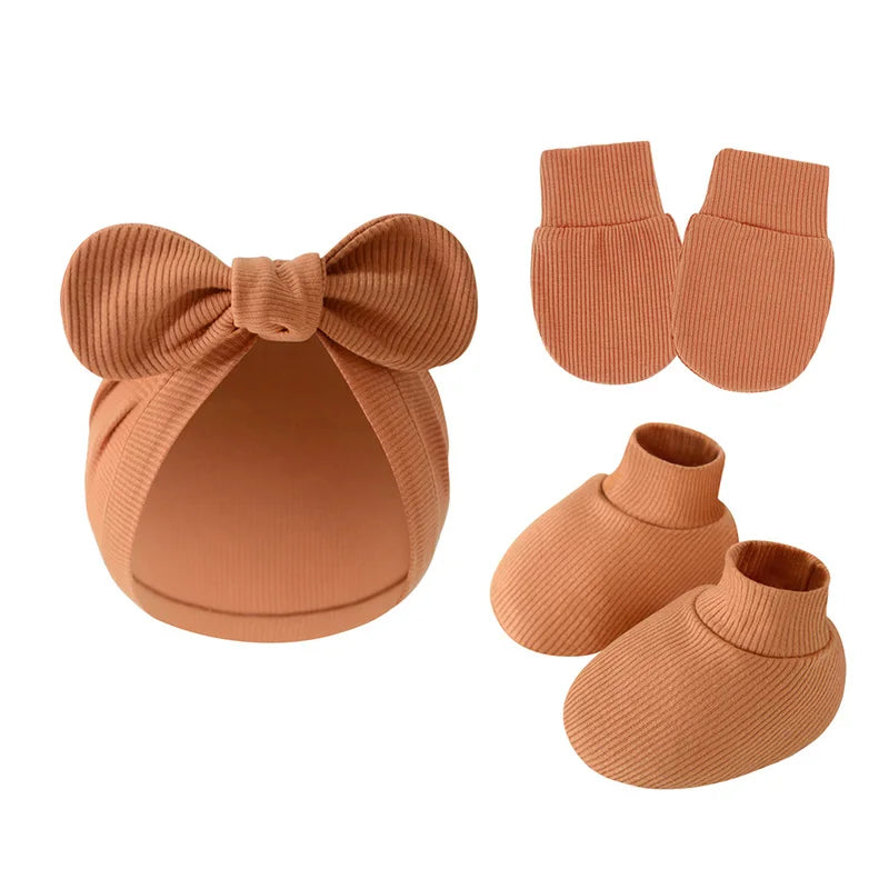 Protégez et habillez votre nouveau-né avec ce set complet pour bébé de 0 à 10 mois, comprenant bonnet turban, chaussettes et gants.