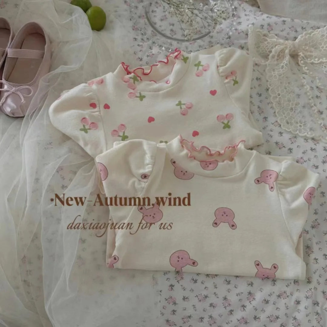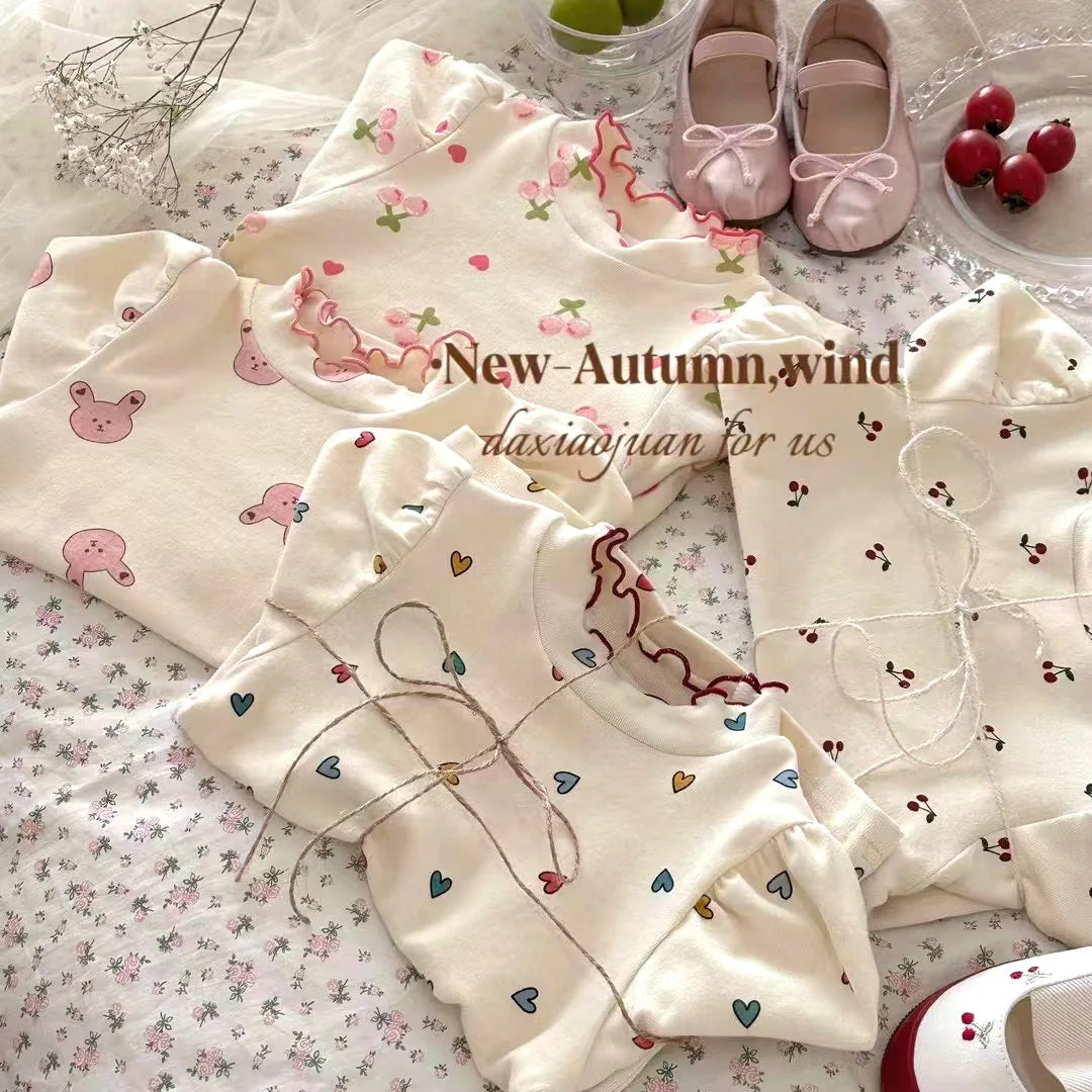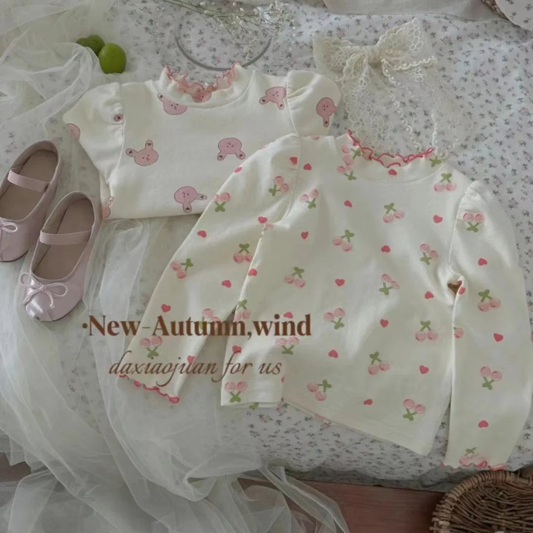 T-shirt pour filles, style coréen, manches longues avec imprimé mignon et coloré.
