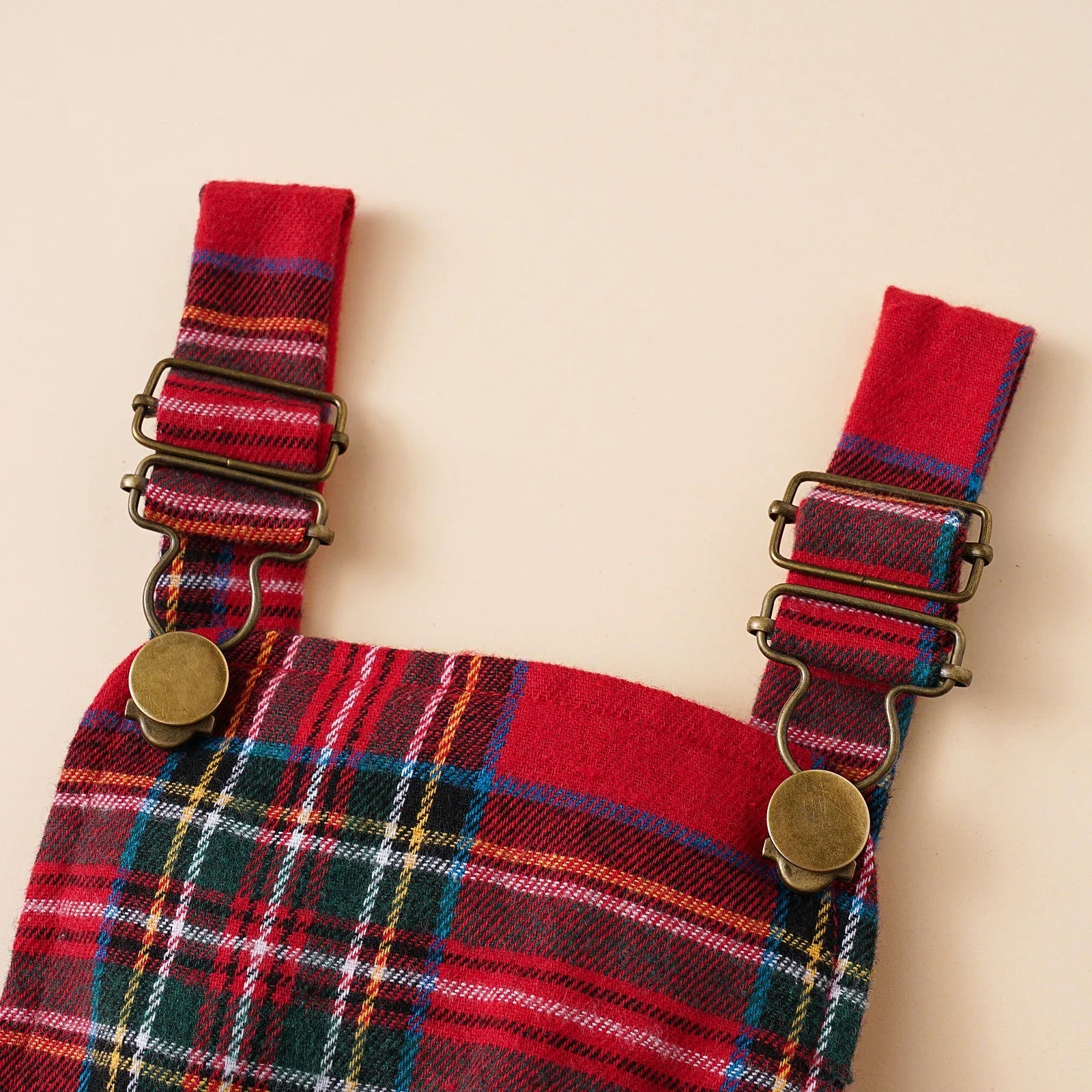 Ensemble de Noël pour bébé fille comprenant body à manches longues à volants et robe à bretelles à carreaux.