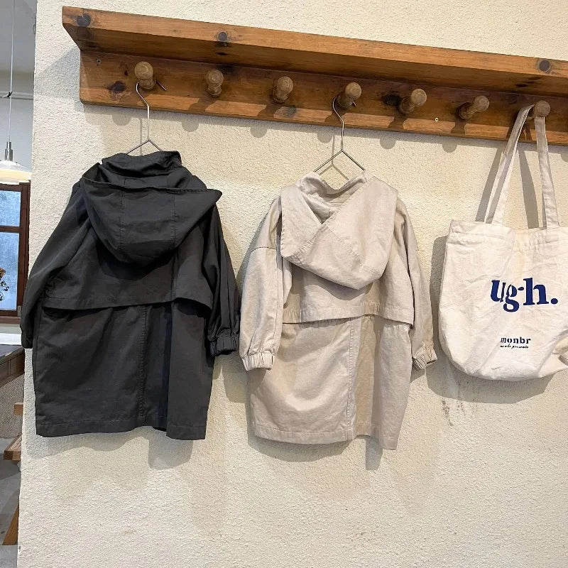 Veste longue à capuche pour enfants, style coréen, ample et décontractée, parfaite pour le printemps.